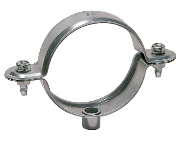 Precio profesionales (Accede a tu cuenta)Abrazadera metálica para desagüe M8 tipo D de 125 mm hecho de acero cincado sendzimir. Dispone de tornillo y tuerca imperdible. El perfil de acero incluye nervio para garantizar una mejor resistencia en los bajantes. El recubrimiento Sendzimir lo hace más resistente a la corrosión.