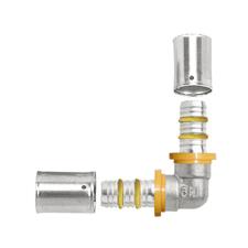 Precio profesionales (Accede a tu cuenta)Codo de 90º para instalaciones de gas, de ø16mm x ø16mm de diámetro. Este codo forma parte de los accesorios del sistema multicapa de tubo y accesorios prensados para instalaciones de gas >B< Flex Gas, de Conex-Bänninger. Todos los accesorios de esta gama están fabricados en latón CW-617N, partiendo de barra de latón cortada en frío y forjada en caliente para una estructura y diseño compacto, con un aspecto exterior niquelado. Con 2 juntas tóricas NBR de color amarillo, identificativo para instalaciones de gas. Con casquillo de acero inoxidable que se fija al accesorio gracias al portacasquillo en color amarillo. Con aplicación en instalaciones receptoras de gas con una presión máxima de hasta 5 bar, y con un rango de temperaturas de -40ºC a 95ºC.