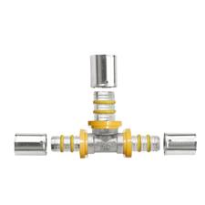 Precio profesionales (Accede a tu cuenta)Te reducida HHH para instalaciones de gas, de ø20mm x ø20mm x ø16mm de medida. Esta te, con conexiones hembra-hembra-hembra, forma parte de los accesorios del sistema multicapa de tubo y accesorios prensados para instalaciones de gas >B< Flex Gas, de Conex-Bänninger. Todos los accesorios de esta gama están fabricados en latón CW-617N, partiendo de barra de latón cortada en frío y forjada en caliente para una estructura y diseño compacto, con un aspecto exterior niquelado. Con 2 juntas tóricas NBR de color amarillo, identificativo para instalaciones de gas. Con casquillo de acero inoxidable que se fija al accesorio gracias al portacasquillo en color amarillo. Con aplicación en instalaciones receptoras de gas con una presión máxima de hasta 5 bar, y con un rango de temperaturas de -40ºC a 95ºC.